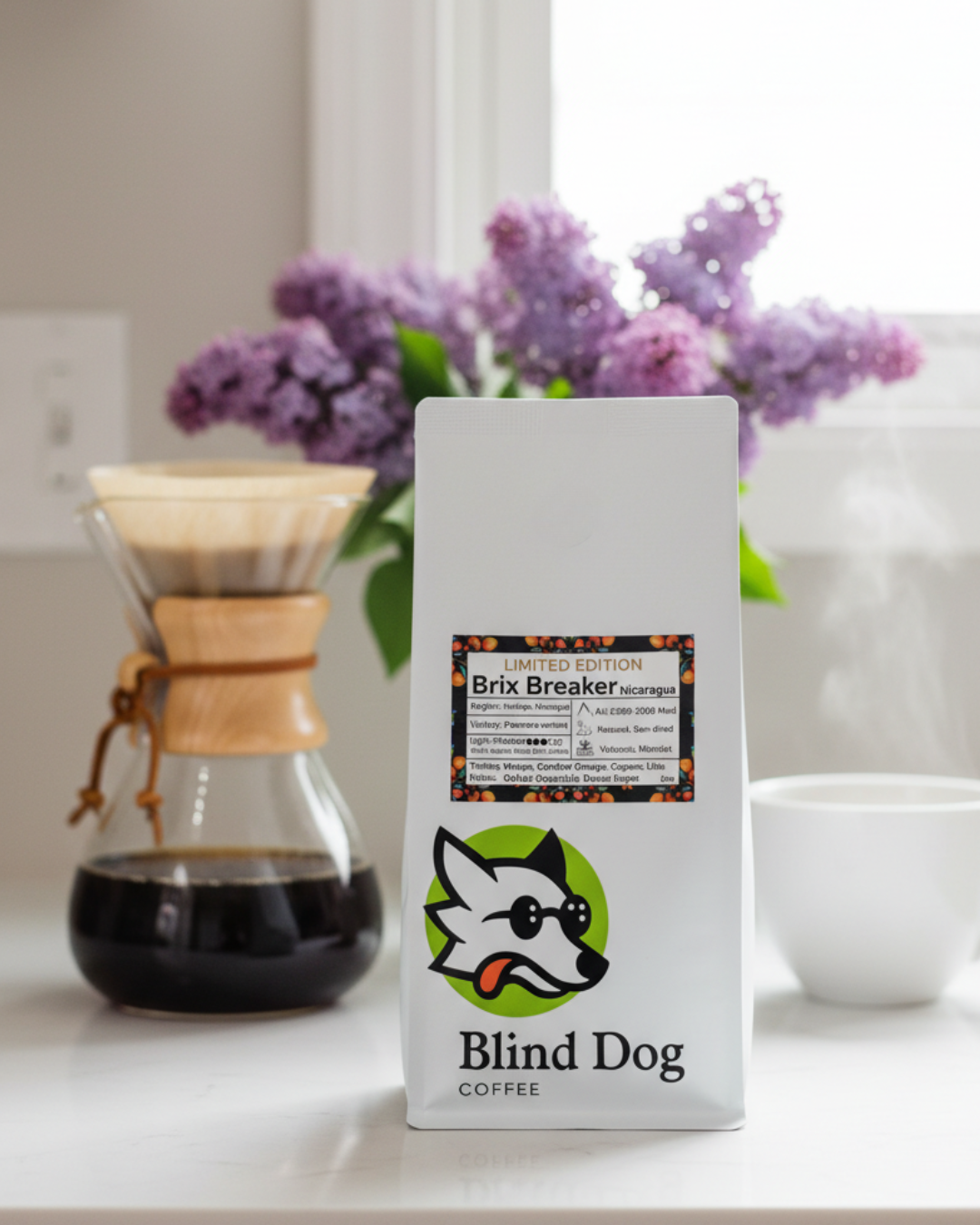 - • Use 20g of coffee (medium grind) per 360g of water.